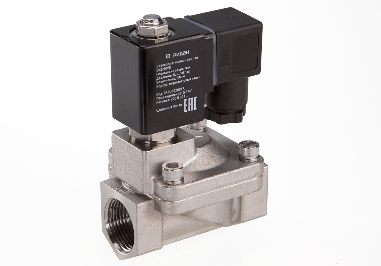 Ридан 042U802502R — Клапан электромагнитный EV220WR, присоединение G 1, материал уплотнения EPDM, нормально закрытый, 0,3…16 бар, с катушкой 24 В, постоянный ток