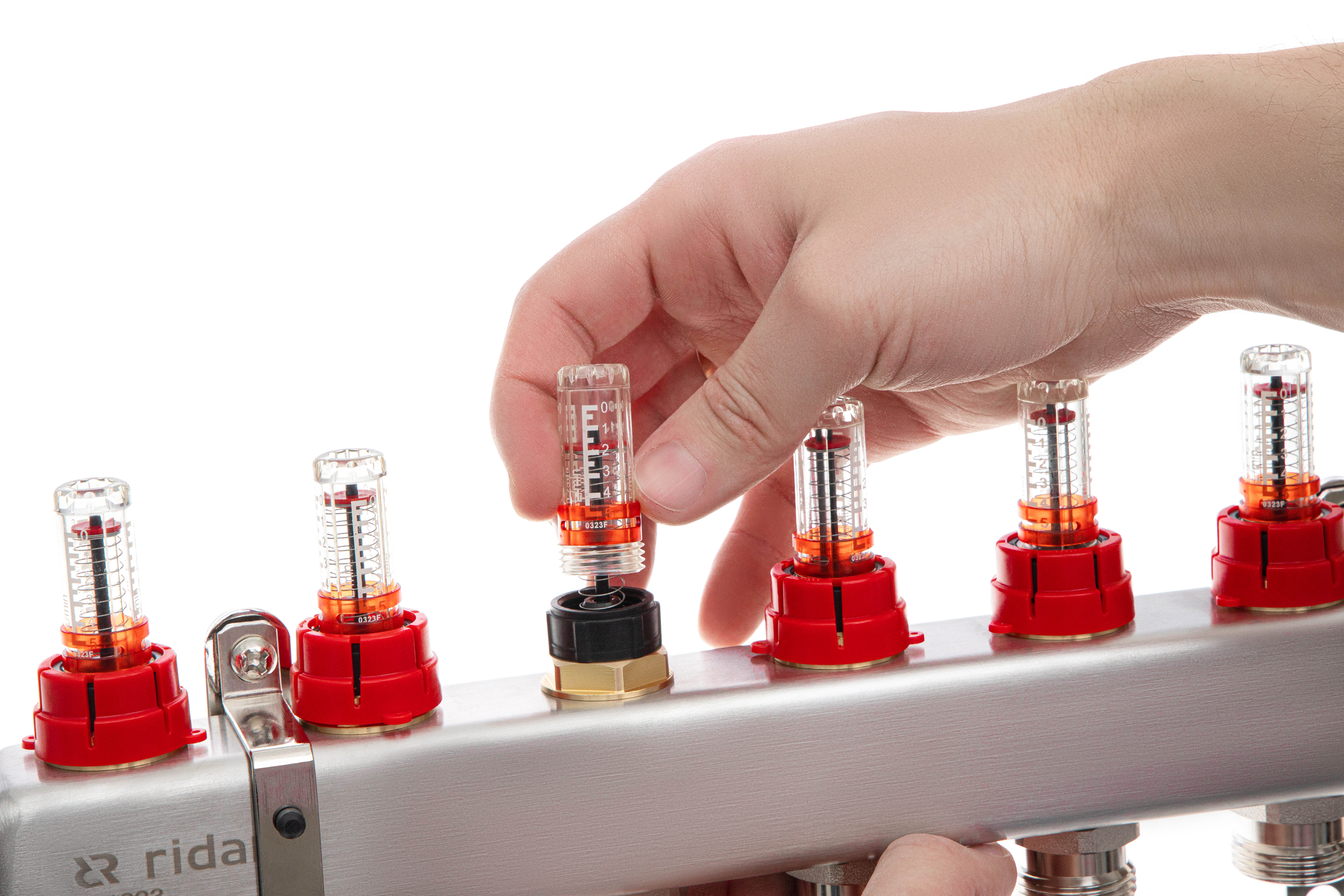 Ридан 088U0952R — Комплект коллекторов SSM-2RF set с расходомерами, кронштейнами, ручным воздухоотводчиком, сливным краном и торцевой заглушкой, 2 контура