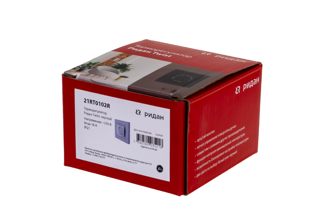 Ridan 21RT1076R — Розничный комплект для теплого пола: нагревательный мат Ridan TF-200 1,5 м² с терморегулятором Ridan Twist (черный)