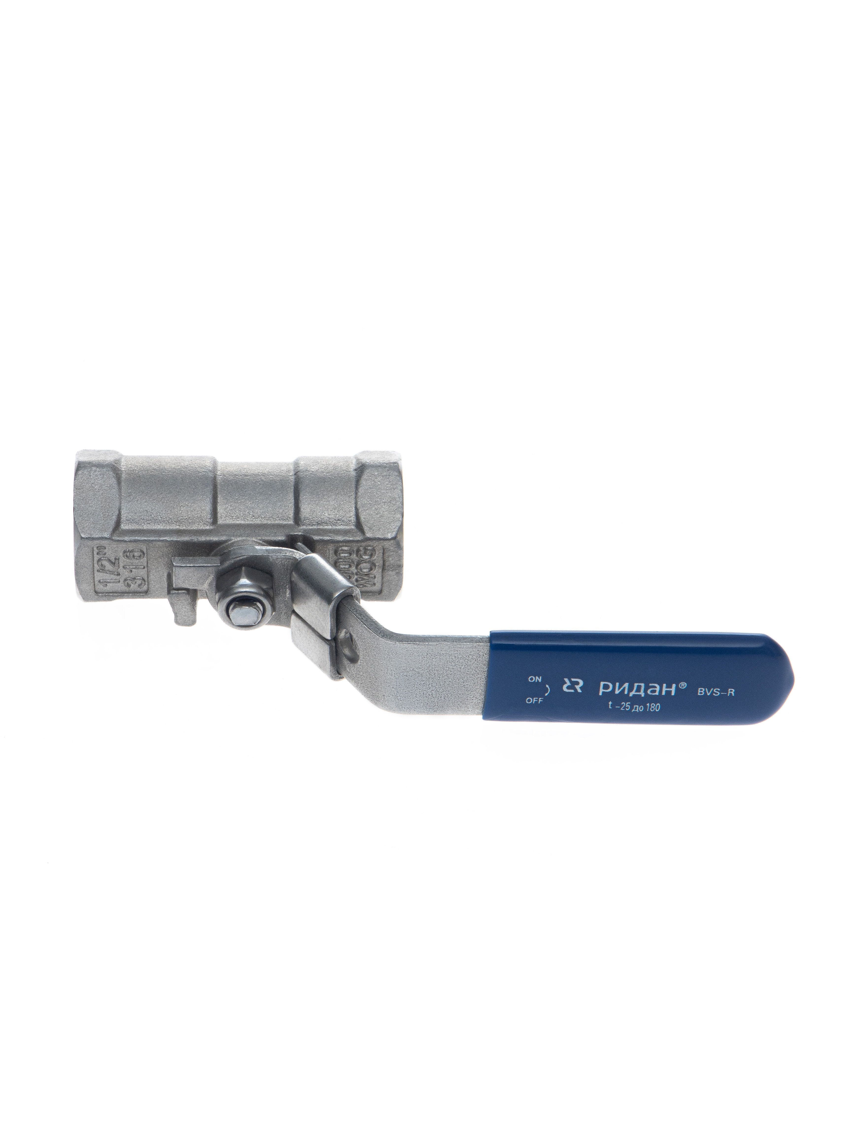 Ридан BVS-R 082X4603R — Шаровый кран резьбовой DN20 PN63, с рукояткой, корпус — коррозионностойкая сталь, шар — коррозионностойкая сталь AISI316; уплотнение по шару R-PTFE (15% C)