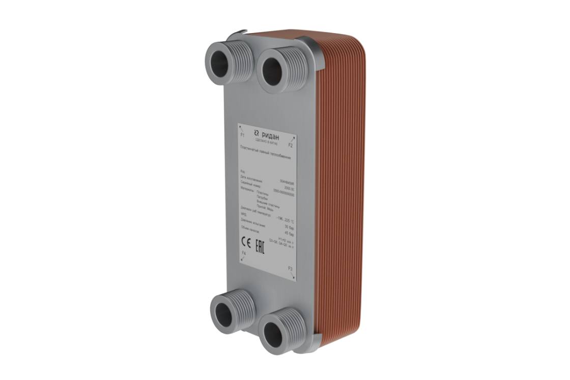 Ридан XB-30R 004H7565R — Паяный пластинчатый теплообменник, DN32, количество пластин 80